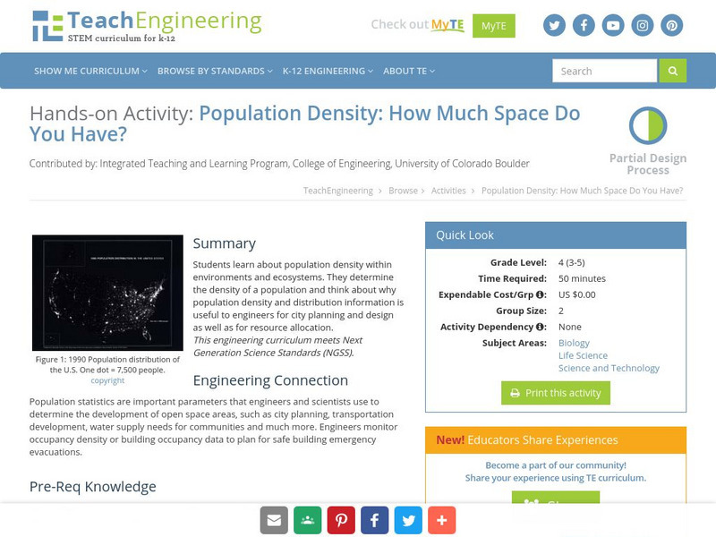 Teach Engineering: Population Density: How Much Space Do You Have?