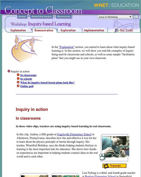 Wnet: Thirteen: Ed Online: Inquiry Based Learning: Inquiry in Action: In Classrooms