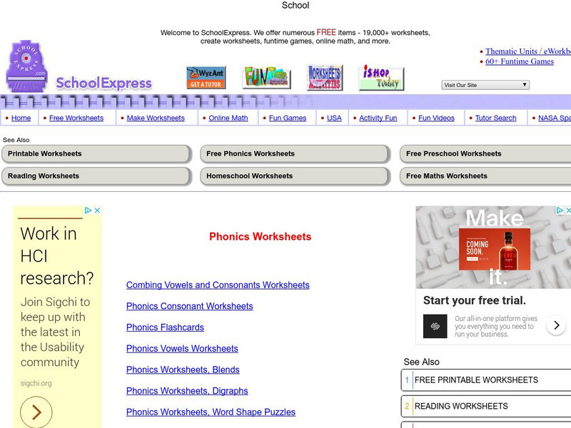 This site provides a variety of creative worksheets which will aid in the teaching of phonics. Areas covered are blends, consonants, vowels, and digraphs.