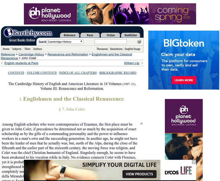 Bartleby.com: Englishmen and the Classical Renaissance: John Colet
