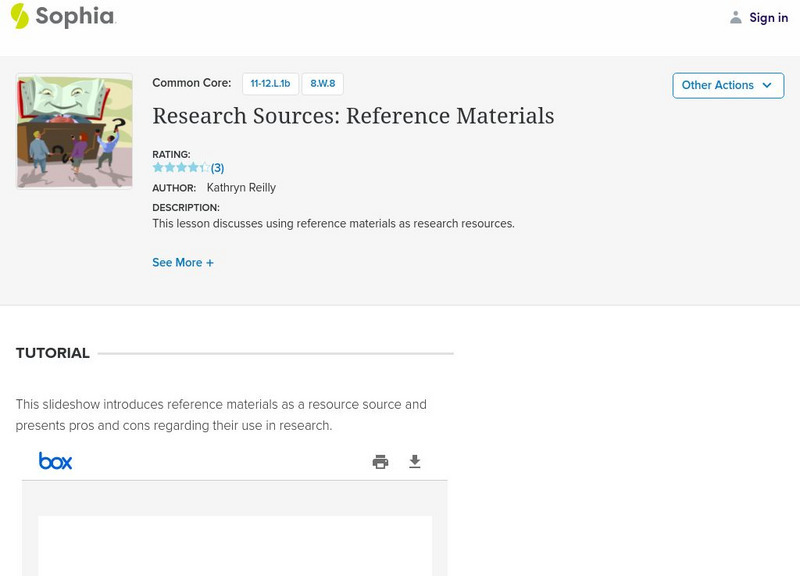[Free Registration/Login Required] This flipchart reviews different reference sources including, encyclopedias, dictionaries, thesauruses, almanacs, atlases, and periodicals.