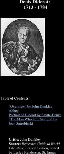 This Brandeis University site offers excellent biographical information on Denis Diderot (1713-1784 CE), including a hyperlinked table of contents and an image.