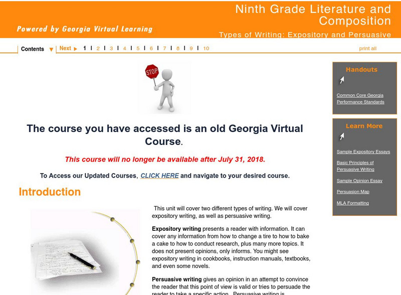 Ga Virtual Learning: Types of Writing: Expository and Persuasive