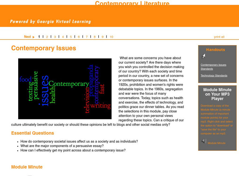 Ga Virtual Learning: Contemporary Literature: Contemporary Issues