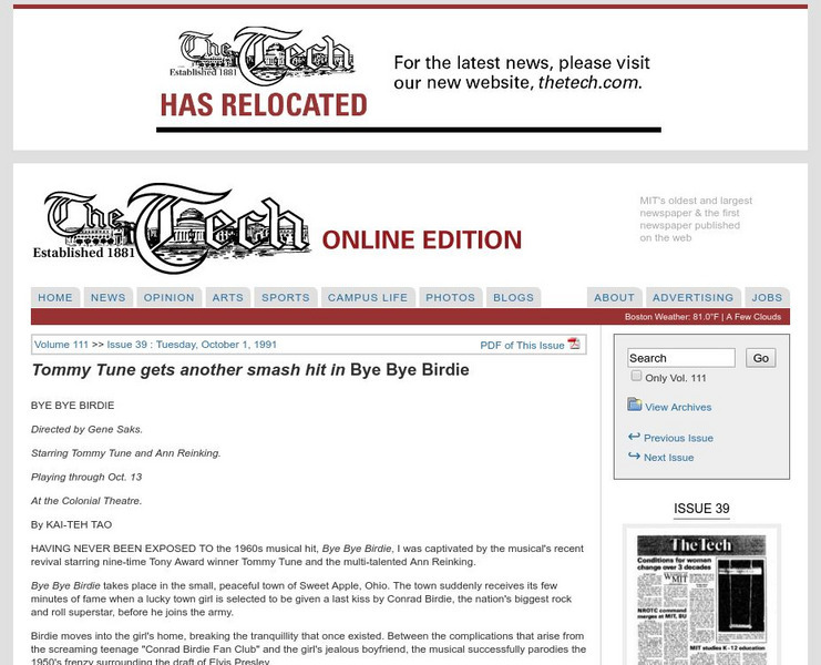 Mit: The Tech: Tommy Tune Gets Another Smash Hit in Bye Bye Birdie