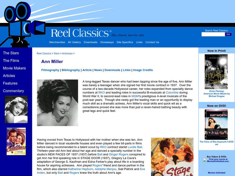 The Internet Movie Database site provides information about tap dancer Ann Miller, includes filmography, birthdate, and place. Also has a lengthy filmography.