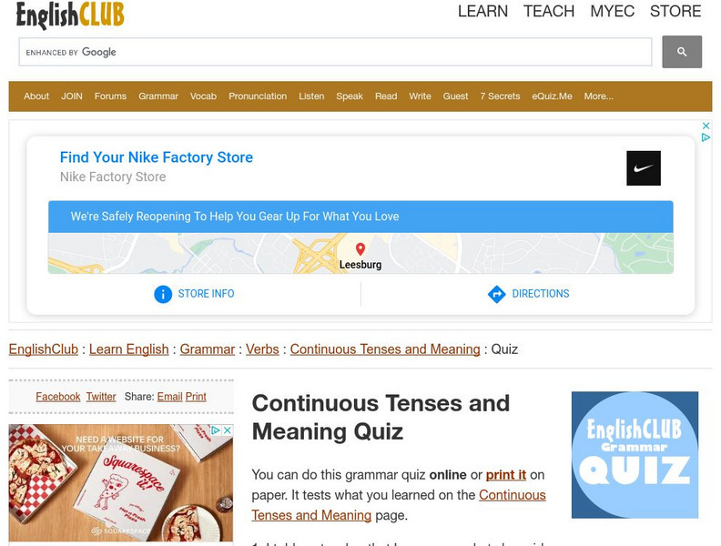 English Club: Learn English: Grammar: Verbs: Continuous Tenses Quiz