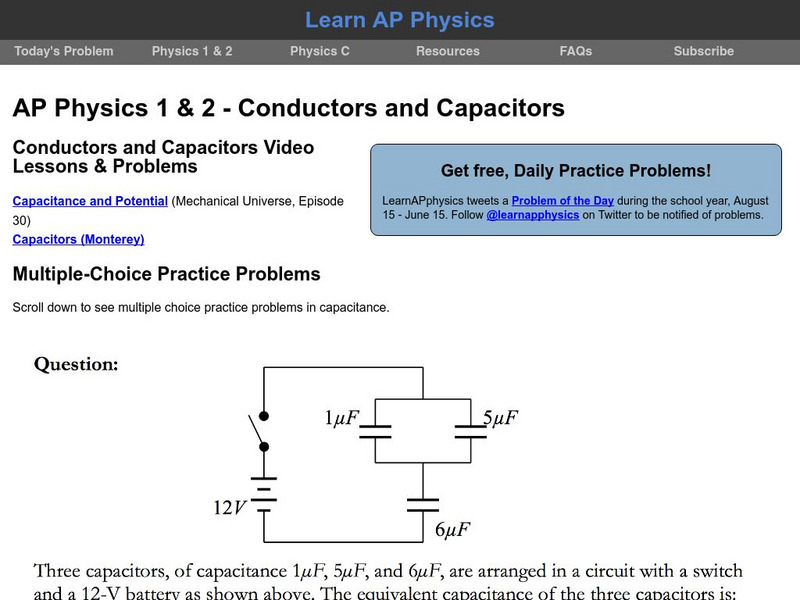 A site dedicated to help students prepare for the AP Physics B test. This specific site reviews conductors and capacitors including polarization and dielectrics. Site contains links to video lectures and practice problems.