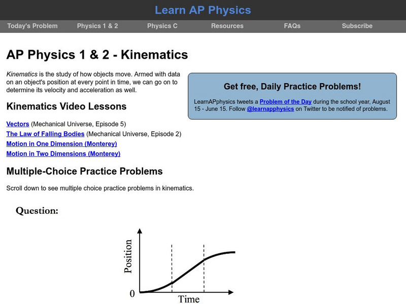 A site dedicated to help students prepare for the AP Physics B test. This specific site reviews kinematics including one and two dimensional motion and vectors. Site contains links to video lectures and practice problems.
