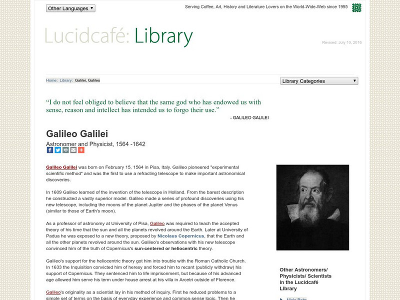 At this site from the Astronomy Department of Cornell University, Kepler's three laws of planetary motion are stated. There are brief explanations of each, along with links to additional information on related subjects.