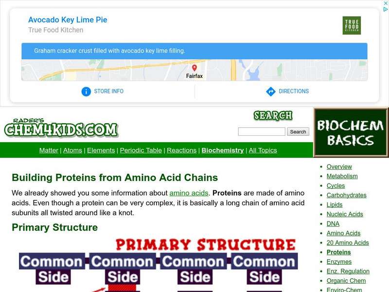 Here you can find some great information about proteins. Learn about a protein's primary structure, secondary structure, tertiary structure, and quaternary structure.