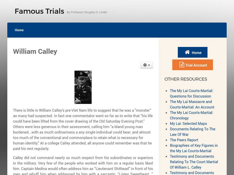 A partial biography of Calley that gives sketches of what people thought about him. The verdict and sentence he received is also covered.