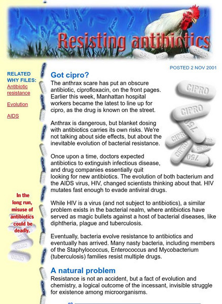 The Why? Files have provided information related to antibiotic resistant viruses. New antibiotics have been created to battle the ever-changing virus.