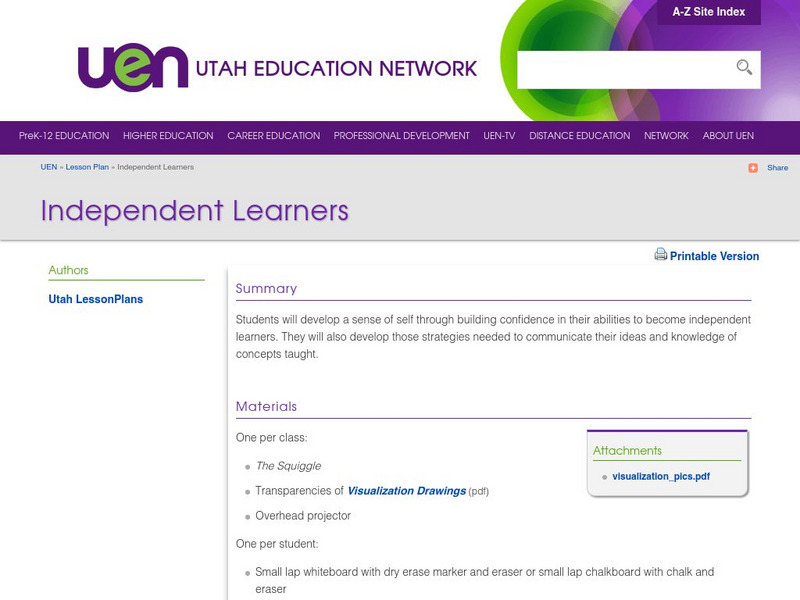 In this instructional activity, students will learn about the skills of visualizing and verbalizing. Both skills will be used to help the students become independent learners.