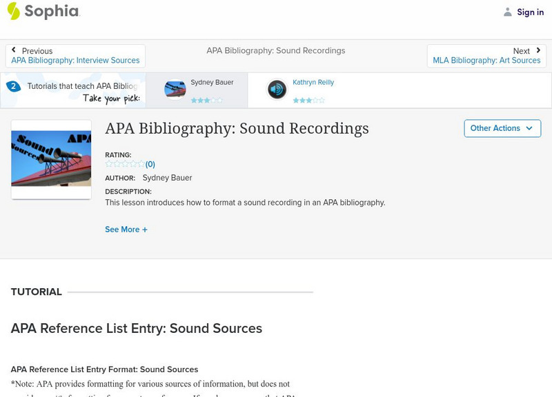 This lesson introduces how to format a sound recording in an APA bibliography.
