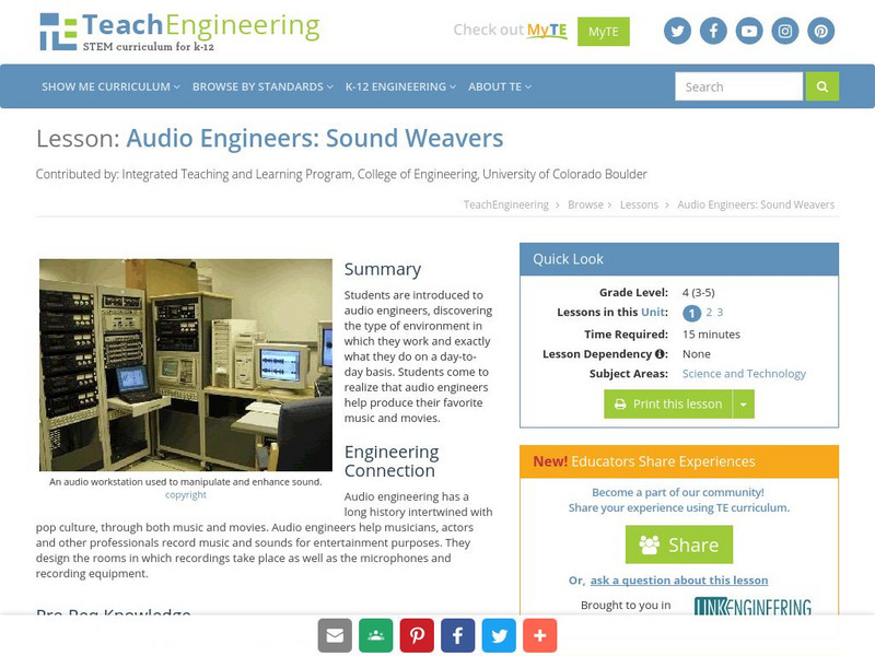 Teach Engineering: Audio Engineers: Sound Weavers
