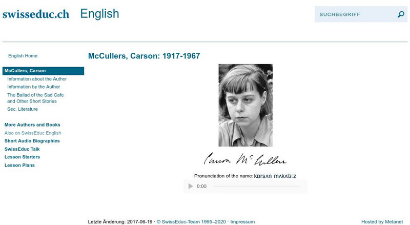 Background information, and teaching ideas for "The Ballad of the Sad Cafe" as well as audio of "Member of the Wedding" and some poetry are all available here.