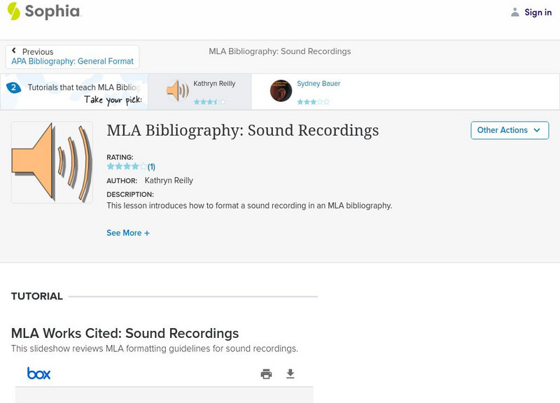 This lesson introduces how to format a sound recording in an MLA bibliography.