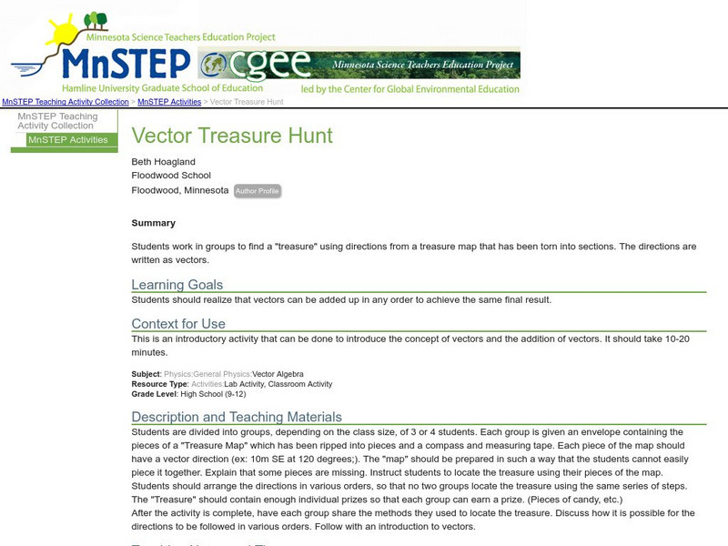 Young scholars work in groups to find a "treasure" using directions from a map that has been torn into sections, and the directions are written as vectors.