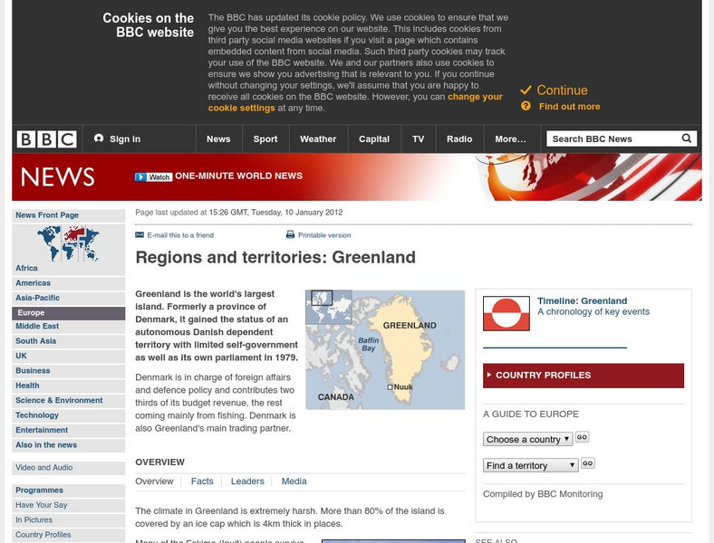 Article providing a general overview of Greenland, the world's largest island, focusing on its history, country facts, political leaders, and news media. Provides links to a timeline of key events, recent news articles, and related...