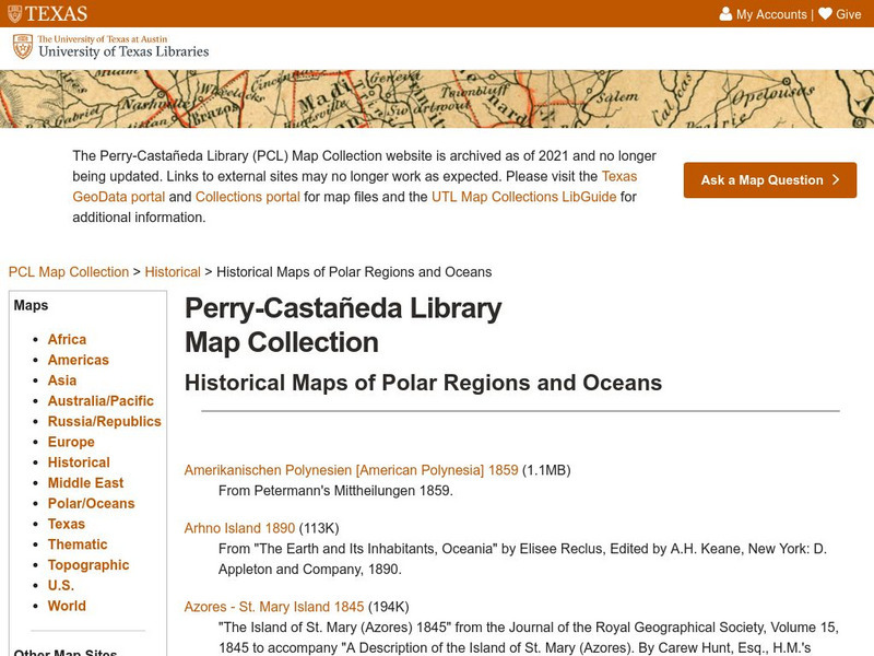 This collection from the University of Texas Library Online of historical maps contains a variety of maps from various parts of the polar region and from different parts of history. Each map is accompanied by a brief description and is...
