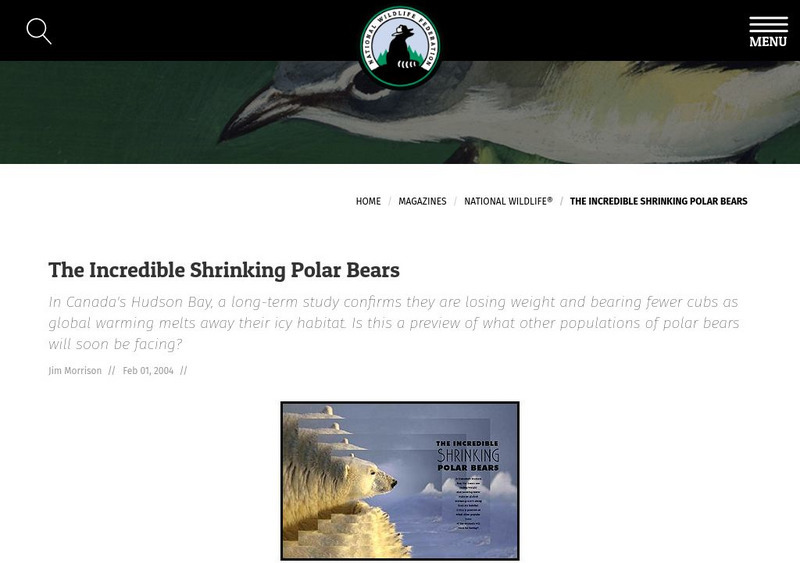 This article, published by National Wildlife Magazine (February/March 2004 issue), offers an insightful look into the life of the polar bears of Canada's Hudson Bay. The article looks at why these bears are losing weight and bearing...