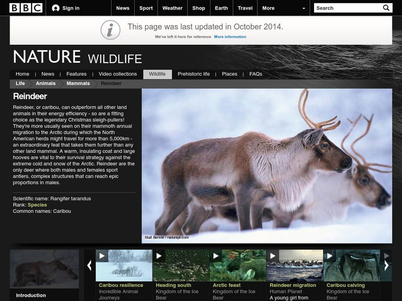 The BBC provides this photo-illustrated fact sheet about the Reindeer. Once found throughout the northern latitudes, these animals are now only found in herds in Alaska, Canada, Scandinavia and Russia.