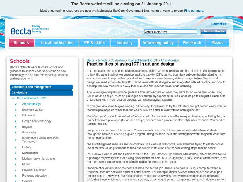 Becta Schools: Curriculum Practicalities of Using Ict in Art and Design