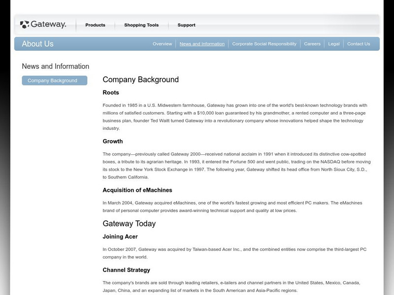 Gateway offers biography information on how Ted Waitt started Gateway in 1985 in Sioux City, IA. This site doesn't offer much personal information about Waitt, but gives a good overview of the start of Gateway.
