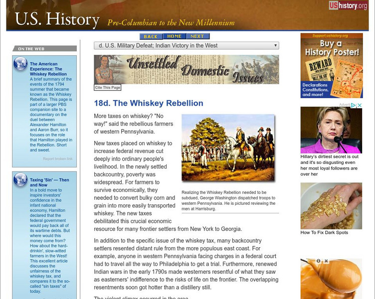 Read about the Whiskey Rebellion and what caused farmers to protest to the point of rebellion. Understand why a federal military response was such a grave decision.