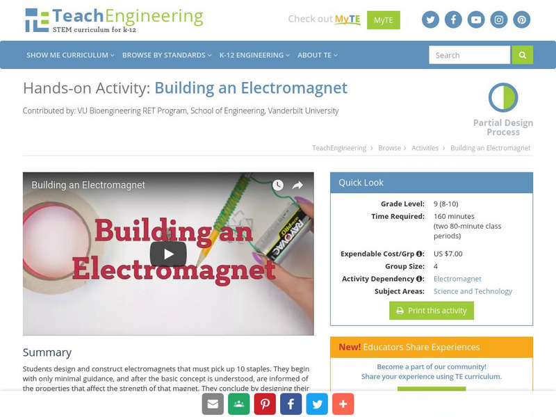 Students design and construct an electromagnet that must pick up 10 staples. They begin with only minimal guidance, and after the basic concept is understood, are informed of the properties that affect the strength of that magnet. They...