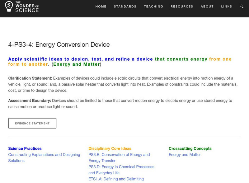 Work samples, phenomena, assessment templates, and videos that directly address standard 4-PS3-4: energy conversion device.