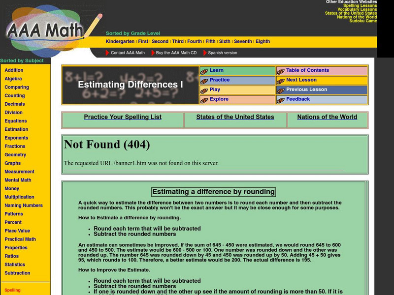 This lesson explains how to estimate differences between whole numbers. Gives practice and games to practice this skill in a helpful and fun way.