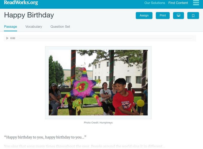 [Free Registration/Login Required] An informational text about how birthdays are celebrated in different countries. A question sheet is available to help students build skills in reading comprehension.
