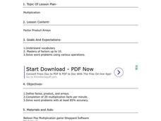 Students study multiplication. For this multiplication lesson, students explore factors, products and arrays. Students investigate word problems using various operations.