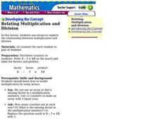 Help the class determine missing factors in equations by creating arrays. Through modeling and practice, they come to see the inverse relationship between multiplication and division. As an assessment, individuals build their own array...