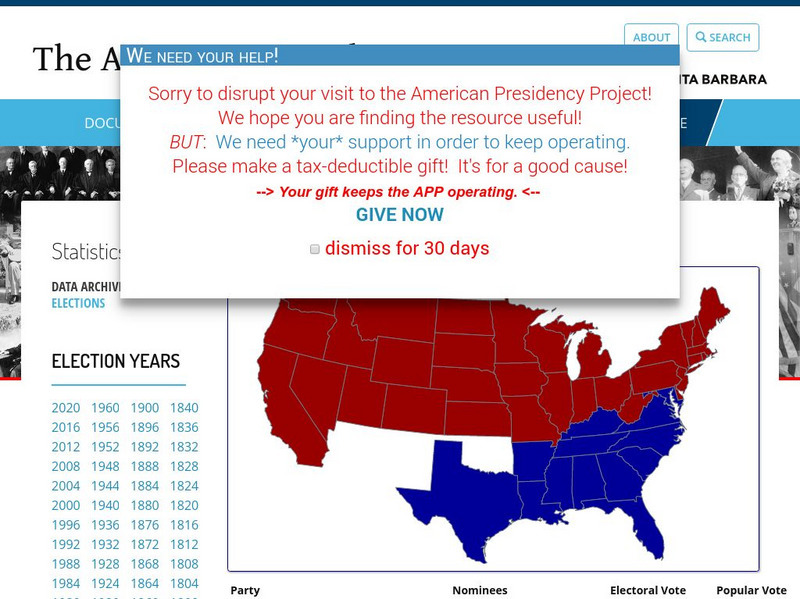 Online resource that provides detailed electoral data for the presidential election of 1904 won by Republican candidate, Theodore Roosevelt.