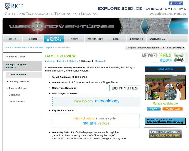 Rice University: Web Adventures: Medmyst: Malady in Mabuufo