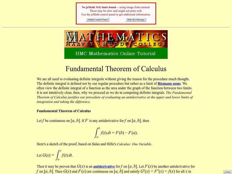 Harvey Mudd College: Fundamental Theorem of Calculus