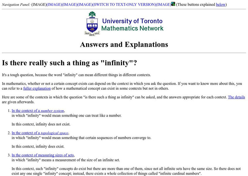 University of Toronto Mathematics: Is There Really Such a Thing as "Infinity"?