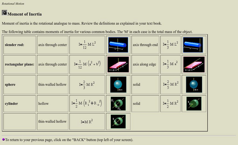 This site is from the Math department of the Texas A&M University and contains wonderful information on Centers of mass and moments of inertia. Pictures, charts, graphs along with great text is all included.