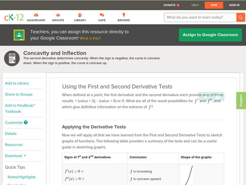 Ck 12: Using the First and Second Derivative Tests