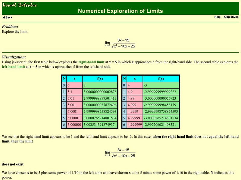 Math Archives: Visual Calculus: One Sided Limits