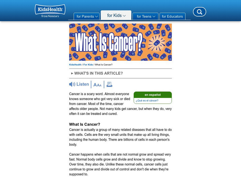 Use this site to find out what cancer really is. Learn the causes, effects, and treatments of this scary disease.