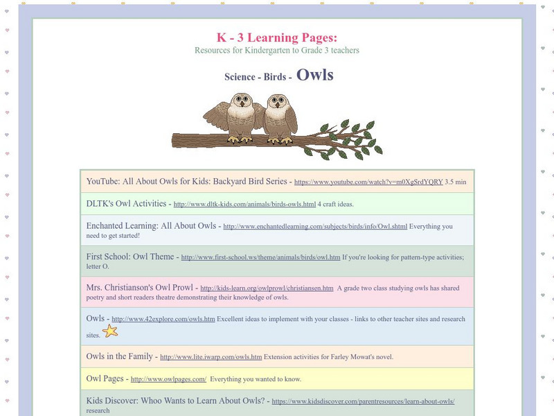 This online resource provides several links to elementary information on owls. You will find lesson plans, photographs, information, facts and more when you explore this resource.