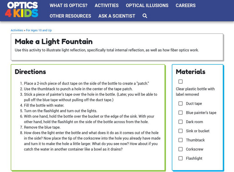 Optical Society of America: Optics for Kids: Make a Light Fountain