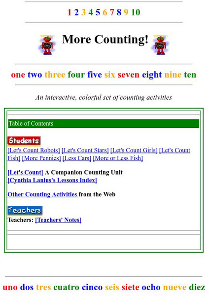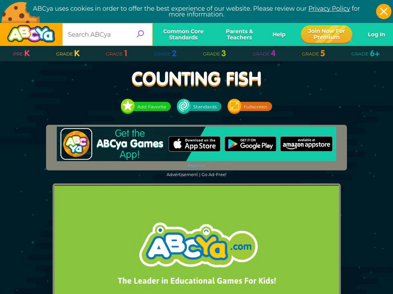 It's time to count the fish! A colorful underwater adventure for practicing basic counting skills. Immediate feedback given to responses. There are three levels of difficulty.