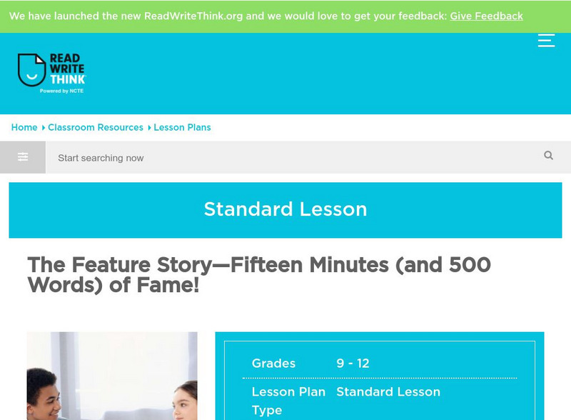 Read Write Think: The Feature Story?fifteen Minutes (And 500 Words) of Fame!