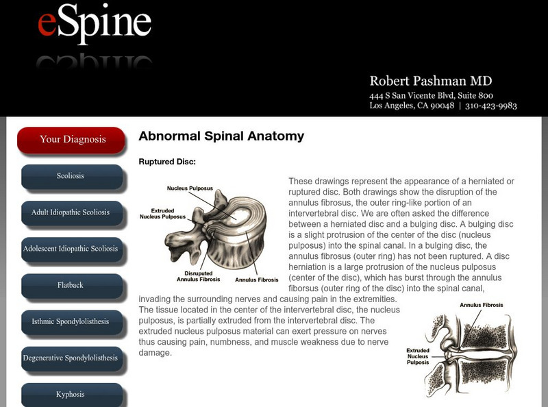 Check out images and brief descriptions of various spine abnormatlities, including a ruptured disk, scoliosis, spondylolisthesis, snd arthritis.