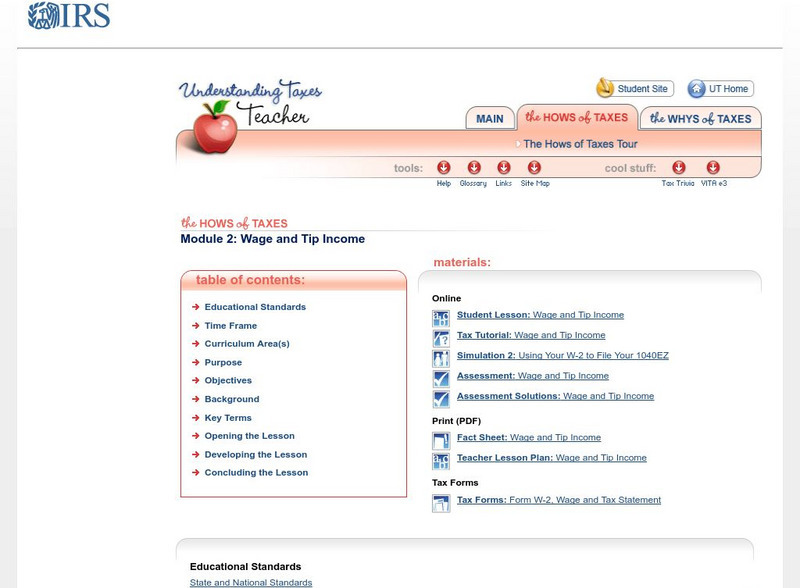 Irs: Wage and Tip Income Lesson Plan [Pdf]